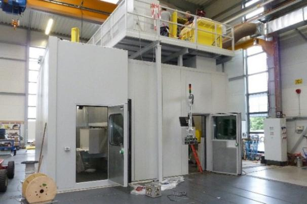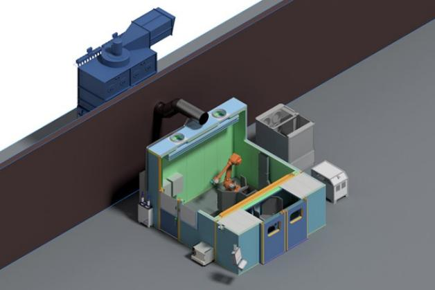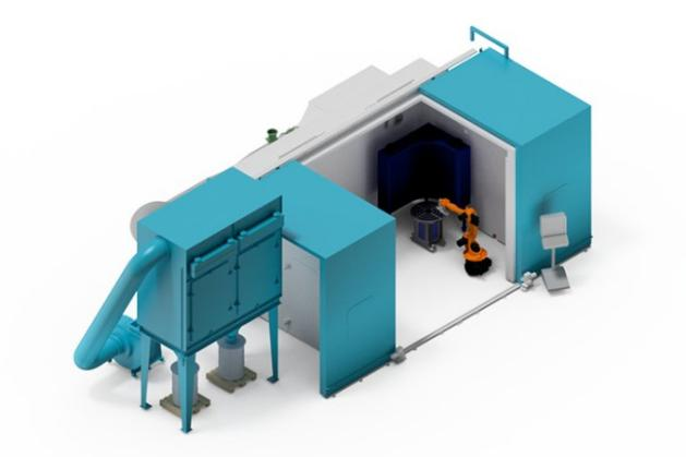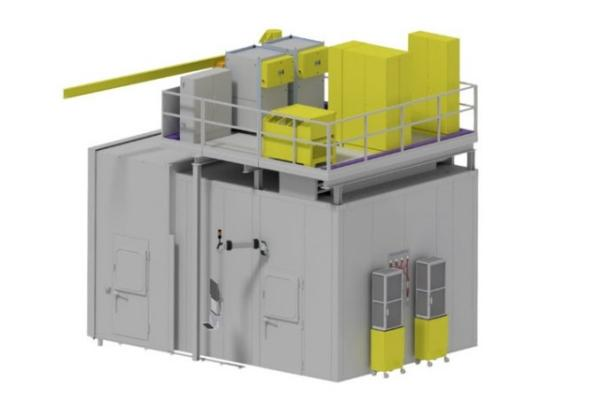 该双涂层系统采用等离子喷涂与超音速火焰喷涂(HVOF)工艺,专用于航空航天部件的涂层制备。部件通过转台安全送入工艺流程,实现了近乎连续的涂层作业。为节省宝贵的占地空间,喷涂技术的核心组件均安装在隔音舱内的一个稳固平台上。